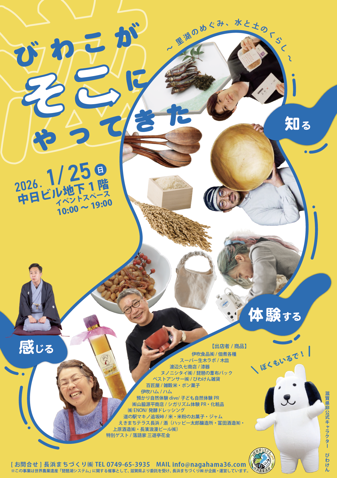 また、物販のみではく、ワークショップやトークショー、滋賀県非公式キャラクター「びわけん」とのふれあいなど、体験型のイベントも盛りだくさんの1日となっています。