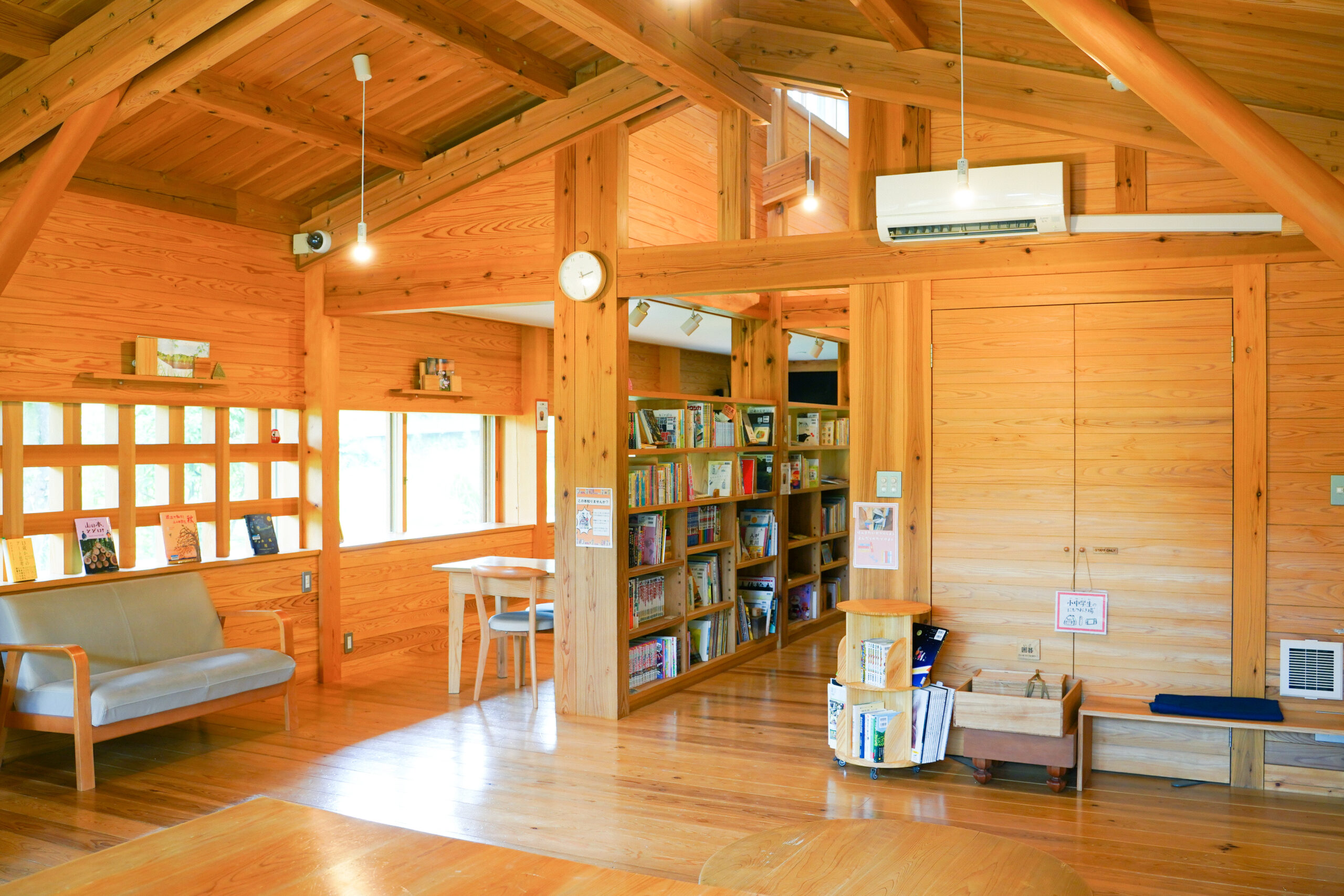 子どもたちが放課後に立ち寄ったり、親子で過ごしたりできる地域子育て支援拠点の機能を備え、図書室には1300冊の蔵書が並びます。一人で読書や勉強に集中できるカウンター席もあれば、みんなで囲んでワークショップができるテーブルもあり、訪れた人が自由に過ごすことができるのがこの場所の魅力です。