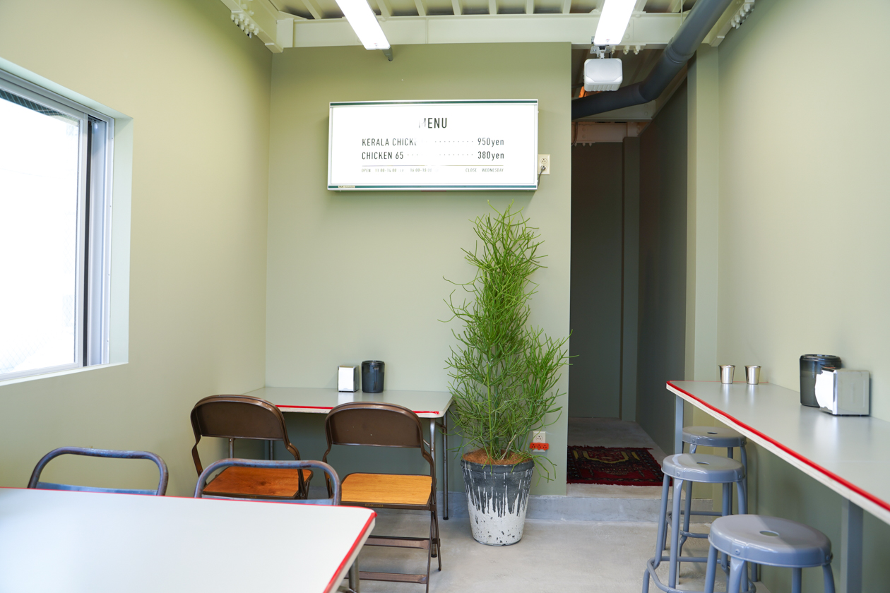 ということで、期待に胸をふくらませつつ、3階へ。テーブルが2つと、カウンターがあり、インドの食堂を少しオシャレにしたような感じ!メニューが書かれた看板ひとつにも、オーナーのインテリアへのこだわりが感じられます。