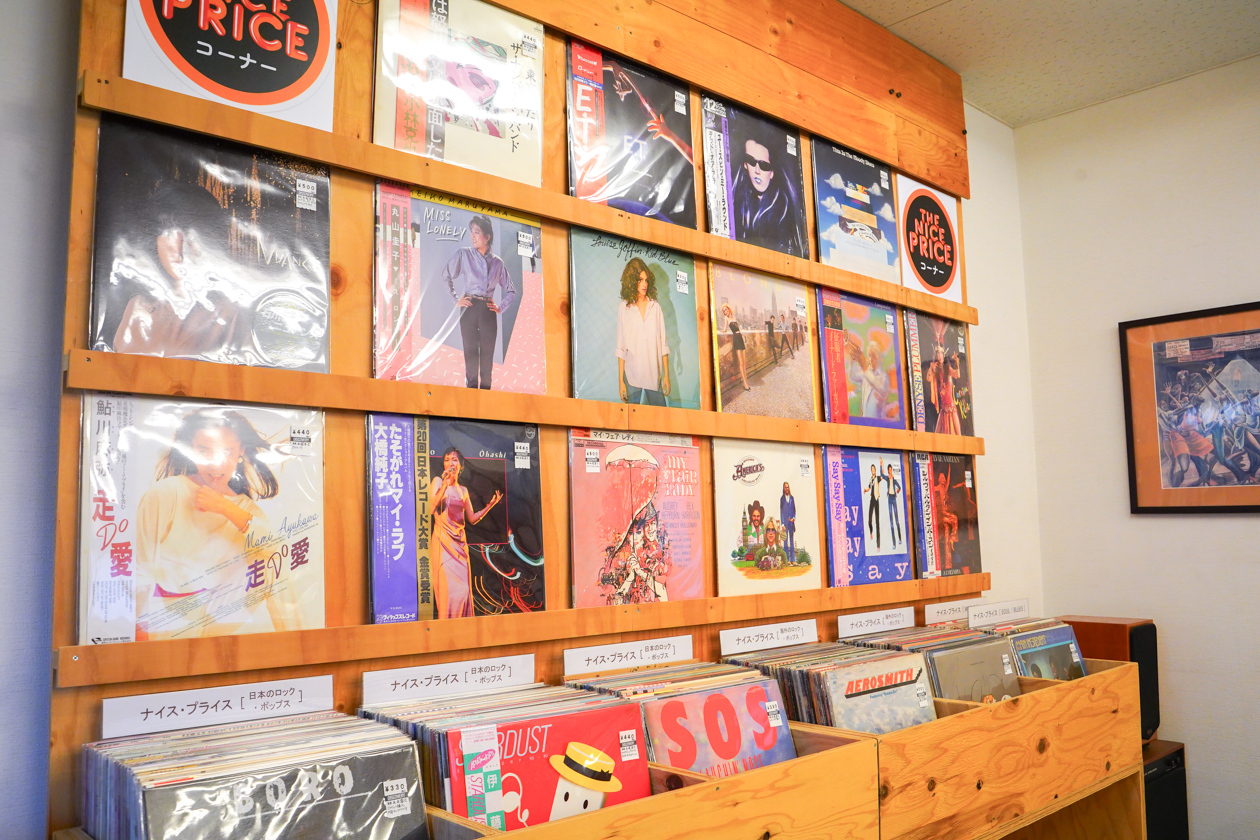 お店に入ってすぐ左手は、「THE NICE PRICEコーナー」。日本のロックやポップスを中心に、懐かしいヒットソングレコードなどが500円以下〜とお手頃な価格で並んでいます。中には昭和アイドルの初々しいデビュー当時のレコードも!