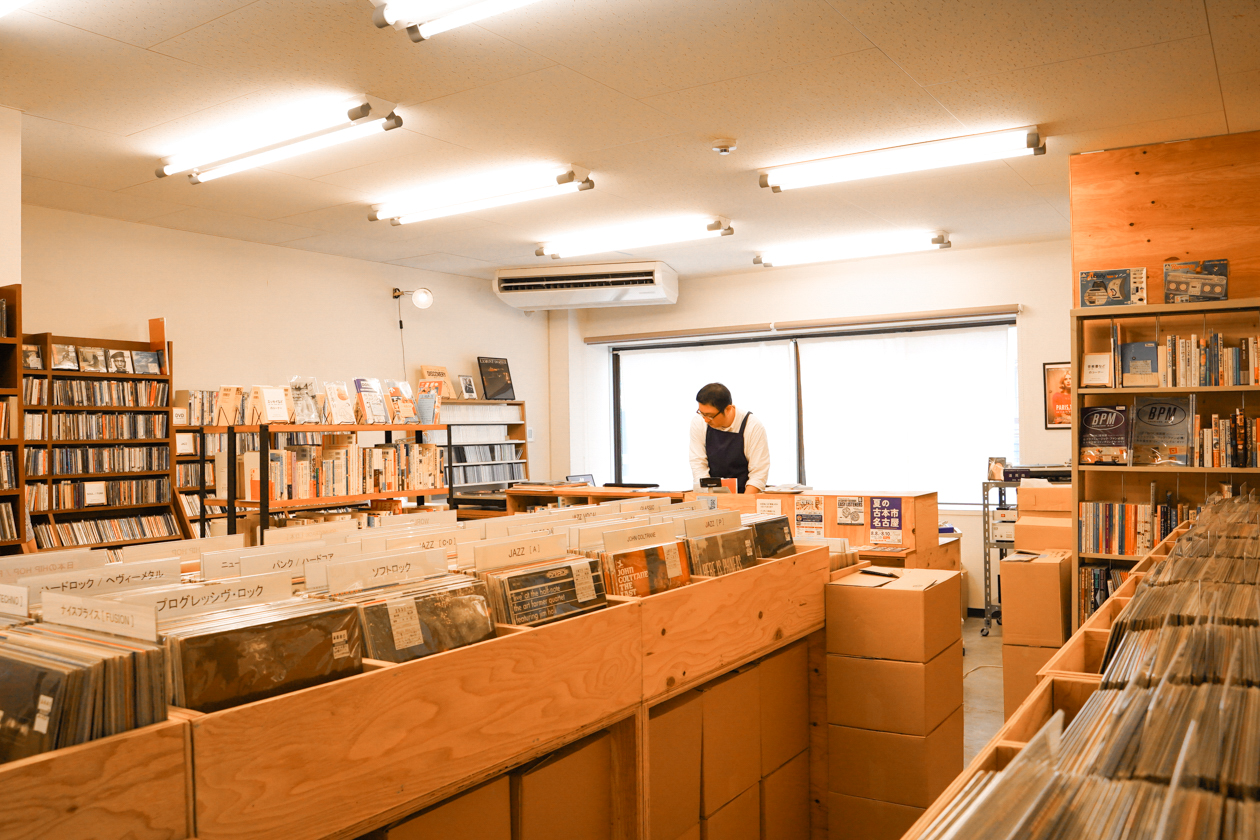 店内には、日本や海外のロック、ポップス、ジャズ、ソウル、ワールド、サントラ、ヒップホップなど、さまざまなジャンルのレコードが並び、CDや音楽にまつわる本も揃っています。