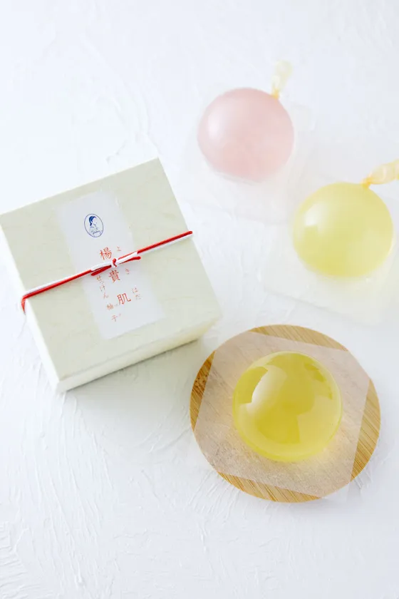 「楊貴肌(よきはだ)玉せっけん」は下呂膏の生薬成分に着目して出来上がったゼリー状のせっけんです。“ 楊貴妃の肌 ” と “ 良い肌 ” をかけ合わせた名前の通り、洗顔後はすべすべ、もっちりとした肌に!