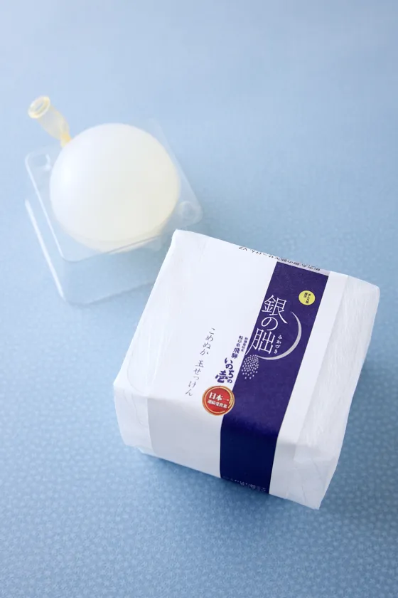 飛騨地域のブランド米「銀の朏(みかづき)」のエキスを使った「銀の朏 こめぬか玉せっけん」には、美容成分のセラミドが多く含まれています。