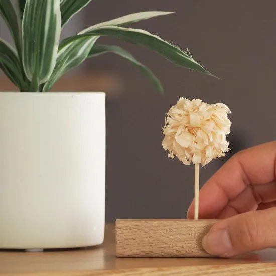 さらに、アロマオイルと一緒に揃えたいのが「アロマツリー」。ひのきの“かんなくず”(木材をかんなで削ったときに出るもの)で作った、手のひらサイズの可愛らしいアロマディフューザーです。