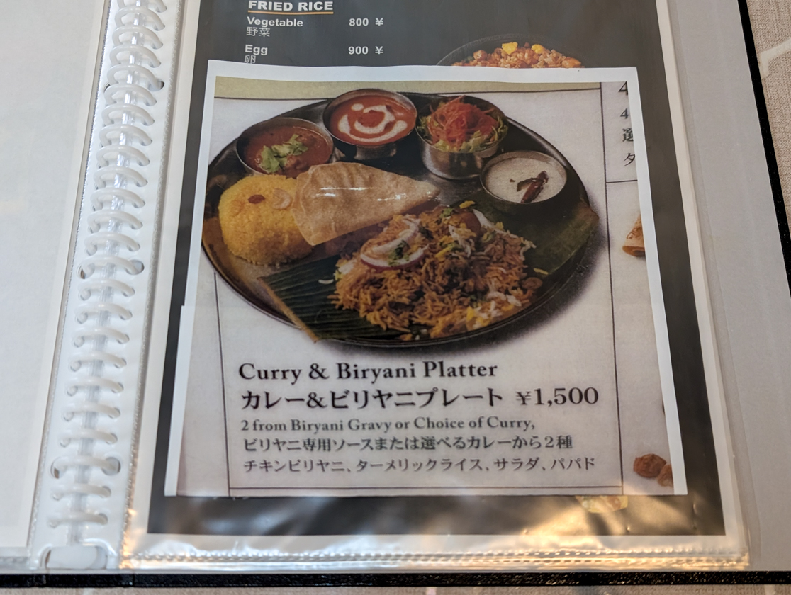 カレー&ビリヤニプレート 1,500円