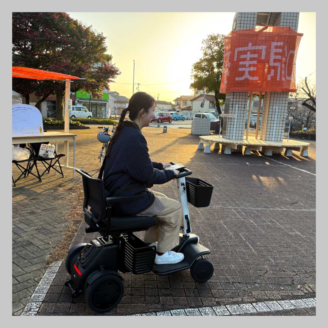 さんは「WHILL」に乗って「落水池」の周りを一周!夕方にはライブや出店のグルメを楽しみました。「まちなかで実験中!VOL.2」は1月31日まで開催していますので、ぜひ、お出かけくださいね!