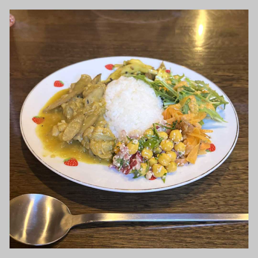 さんは、以前に訪れた「山法師」というお蕎麦屋さんの奥にあって気になっていた「Epice Coffee」さんでランチ!「ココナッツカレーにはひよこ豆のサラダやきのこのアチャール、人参ドレッシングのサラダがついていて、まろやかで根菜の食感が楽しいカレーと一緒に食べるとおいしかったです!」と津田さん。食後のチャイはかなりスパイスが効いていて、ピリピリとする辛さもクセになったんだそう!みなさんもぜひ、出かけてみてくださいね!