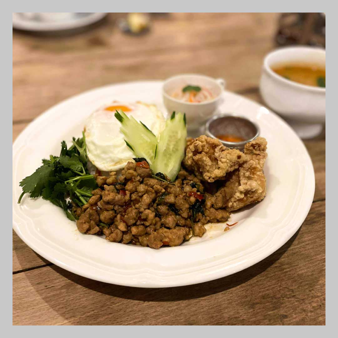 さんは、ある打ち合わせで多治見市のながせ商店街へ。歩いていると、おしゃれなタイ料理屋「カオニャオ」さんを発見!ちょうどお昼だったので、ランチをいただきました。料理には無農薬ハーブや地元野菜を使用されているそう!「カオニャオランチのガパオライスは、粗挽きの挽肉がごろごろしてて、食べ応えがありました!唐揚げも竜田揚げのような食感で、チリソースつけるとさらに美味しい! 具沢山のトムヤンスープもついていて、満足感が半端なかったです!」とのこと。ぜひ、みなさんも「カオニャオ」さんに出かけてみてくださいね。