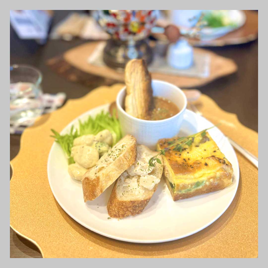 さん。 12月のキッシュランチは、鮭とほうれん草のキッシュに、パイ付きの雑穀スープ、ニョッキ、ポテトサラダのせバケットという、クリスマスらしさを感じるメニュー。店内の飾りもクリスマス仕様で気分が高まりました!食後ははちみつカモミールティーやカフェオレであたたまって、年末の忙しい時期ですがほっと一息つくことができたメンバーでした。