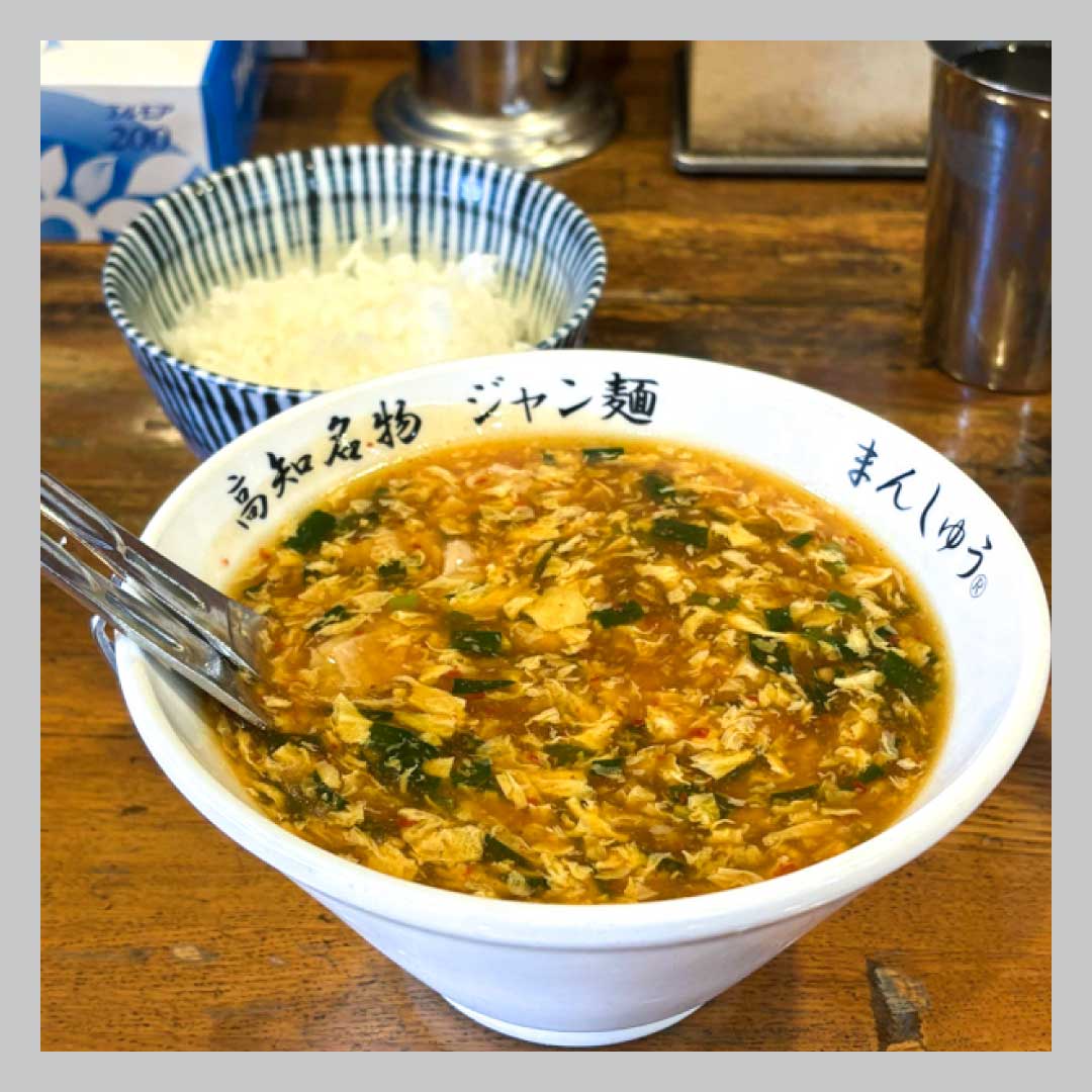 さん。高知といえばカツオですが、お昼は高知名物という「ジャン麺」を食べに行ったそう!「黄色くて細い麺に甘辛い餡のようなスープがからんで、ホルモンやニラがたっぷり入っていて、岐阜では食べられないクセになる味!“ごはんに合うラーメン”らしく、店内のほとんどの方がごはんもつけていたので、私も迷わずつけましたが、とろとろな餡のスープと相性抜群でした!」。もちろん、夜は生カツオを堪能したそうですよ!