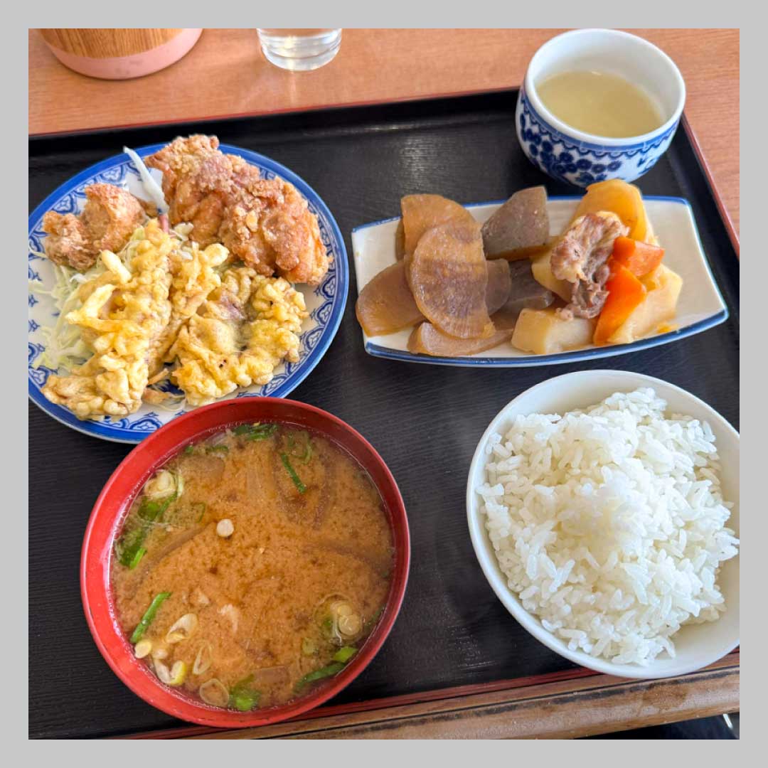 さん。お昼ごはんは通りすがりに気になった「松川食堂」さんへ、ふらりと立ち寄ることにしました。 店内のショーケースには、おかずがずらり!その中から好きなものを自分でお盆に乗せて最後にご飯と豚汁を注文する、まさに“ザ・食堂スタイル”!おかずはお皿ごとに値段が決まっていて、お会計は食後。「どのおかずも美味しそうでたくさん選びましたが、お会計は850円(!)と大満足のランチになりました。店内は町で働く人たちで賑わっていて、まさに安八町の方々を支える食堂でした!」。