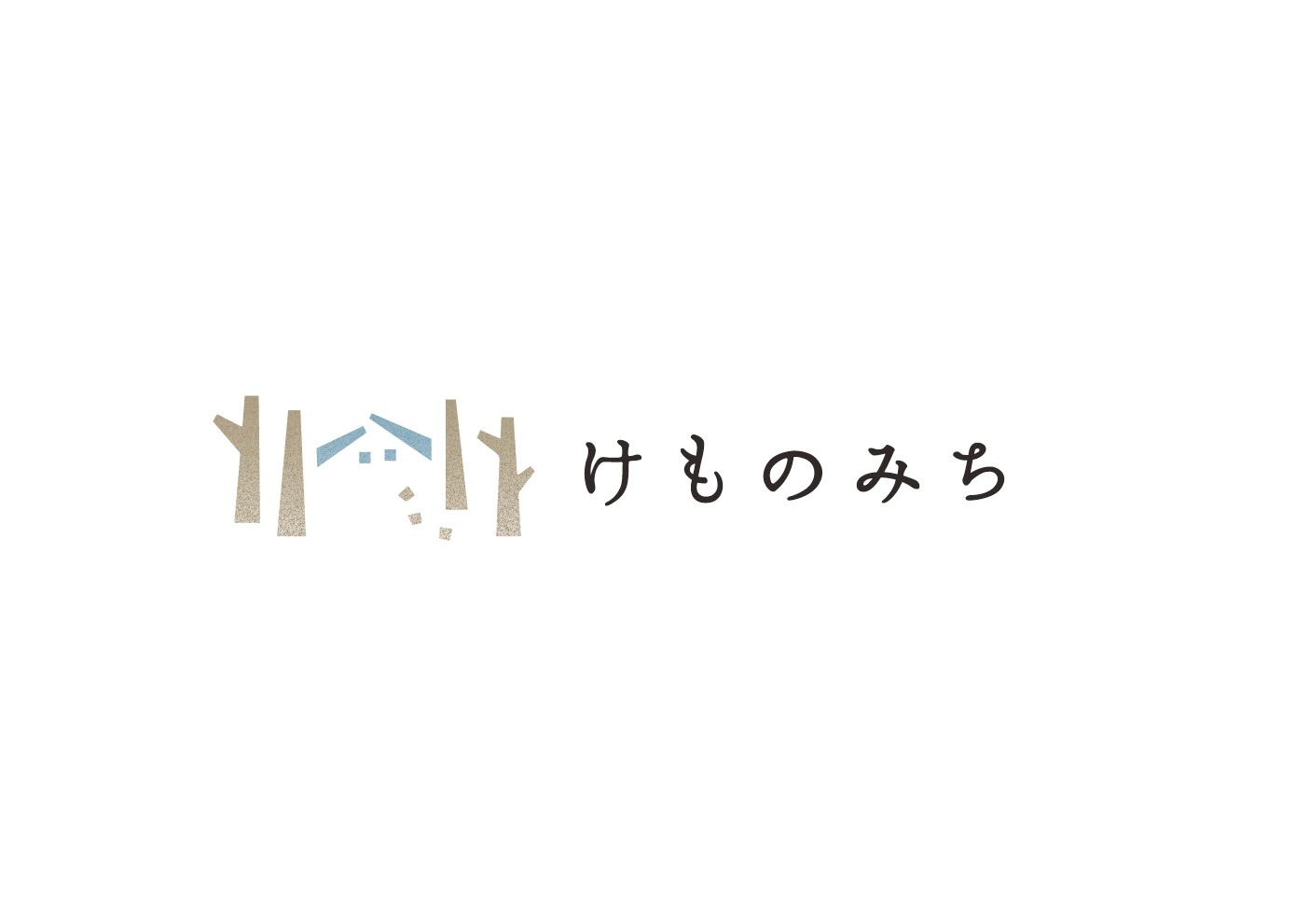 左上にあしらわれているのは、けものみちさんのロゴ。中央にある三角屋根の小さな工房につづく小さな足跡は、森の中の“獣道”や、人が集う温かい気配を表現しています。