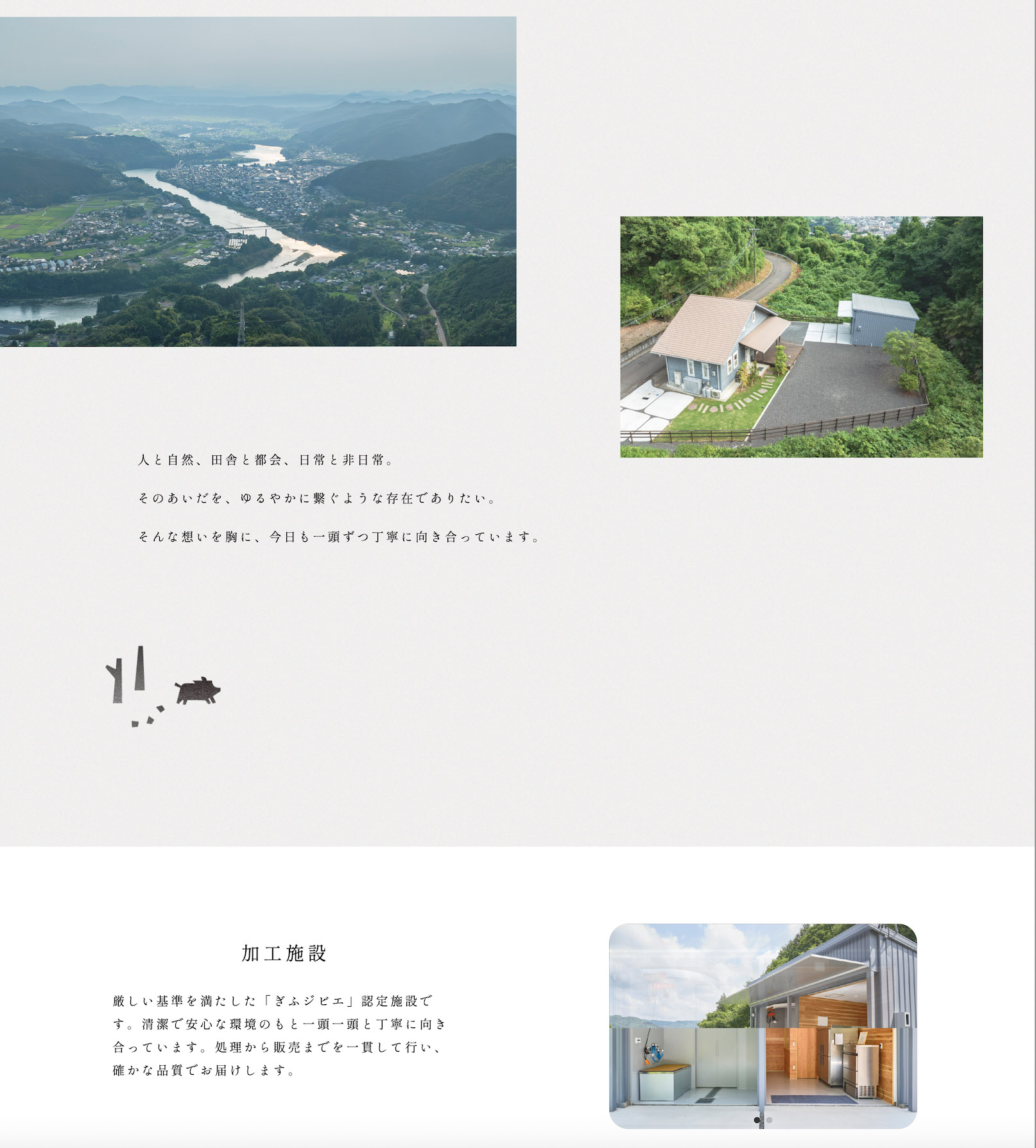 そんなけものみちさんのWEBサイトでは、ジビエづくりへの想いや取り組み、加工施設について丁寧に紹介。八百津町の森や木曽川の美しい景色が添えられていて、豊かな自然に囲まれた工房の空気感が伝わってきますね!