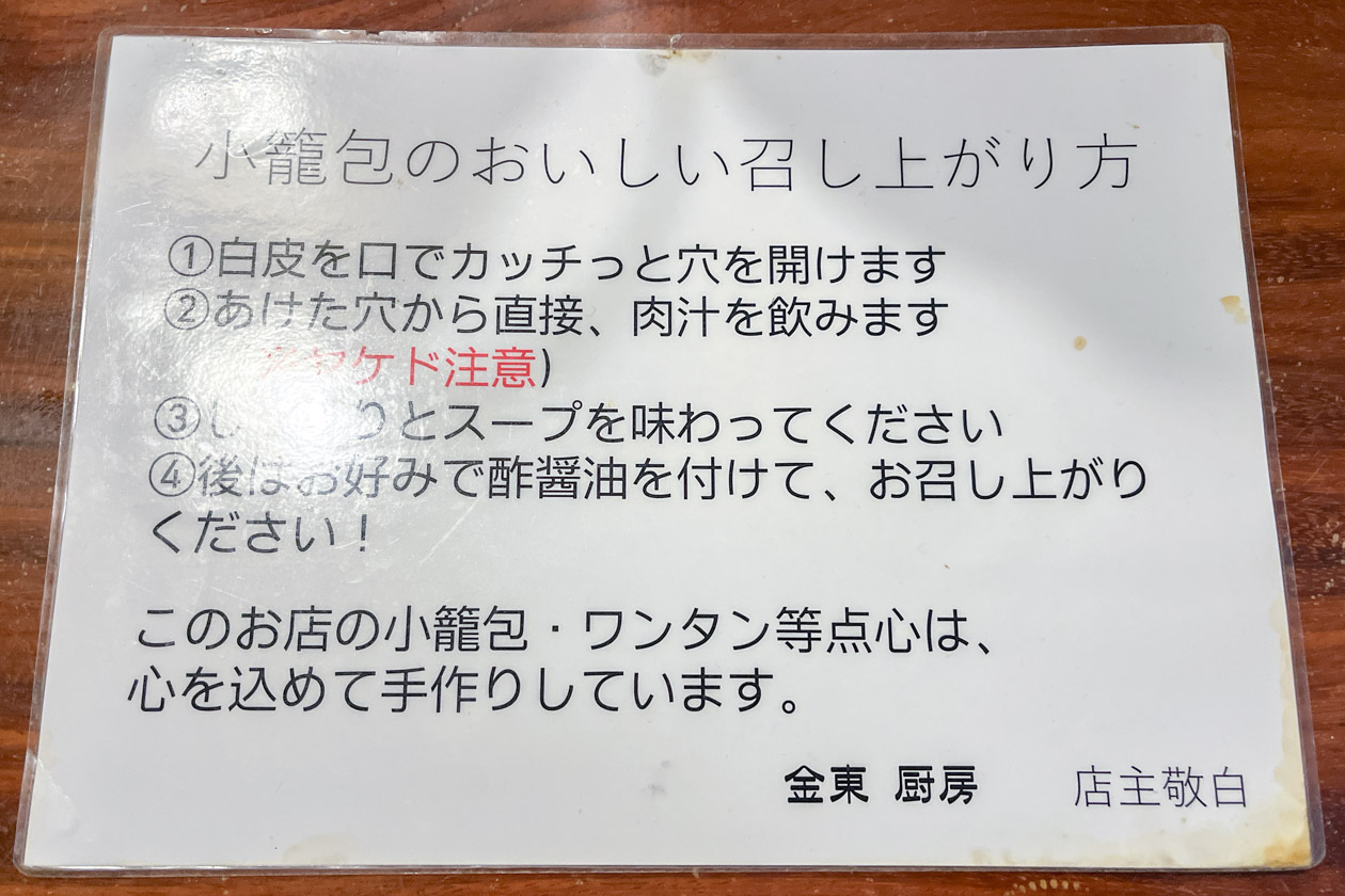「小籠包のおいしい召し上がり方」のガイドを参考に、まずは肉厚な皮に穴をあけて溢れ出す肉汁を堪能!次に酢醤油をつけて楽しみます。上はもっちり、下はカリッと焼かれた皮に、たっぷり入った肉餡がたまらなくて、何個でも食べられそうです…!
