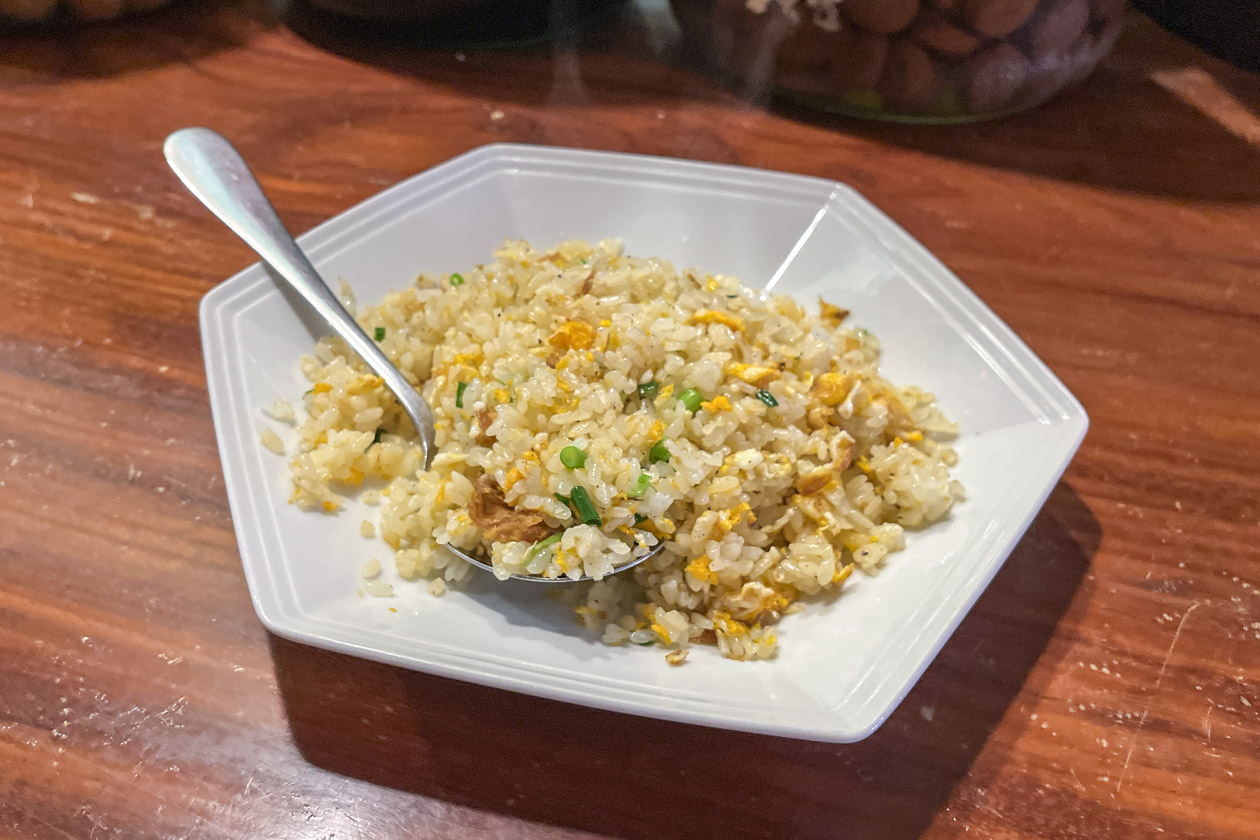 こちらは「卵チャーハン」。ザ・チャーハンというシンプルで潔いビジュアルです!パラパラに炒めたお米に、ふんわりとした卵。優しい味付けですがちょっとだけ胡椒が効いていて、こちらもスプーンが止まりません!