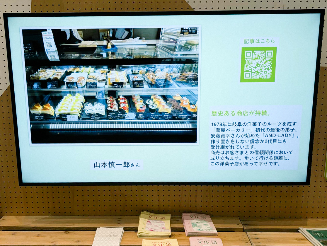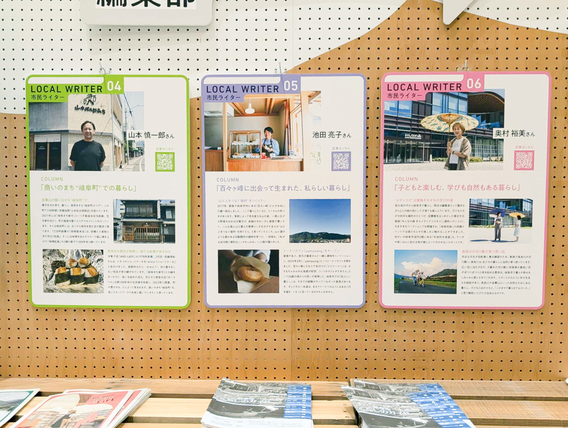 今回新しく始まった展示では、岐阜市の移住・定住情報発信サイト「ココカラWEB」にて連載がスタートした「岐阜市暮らしの編集部コラム」が紹介されています。