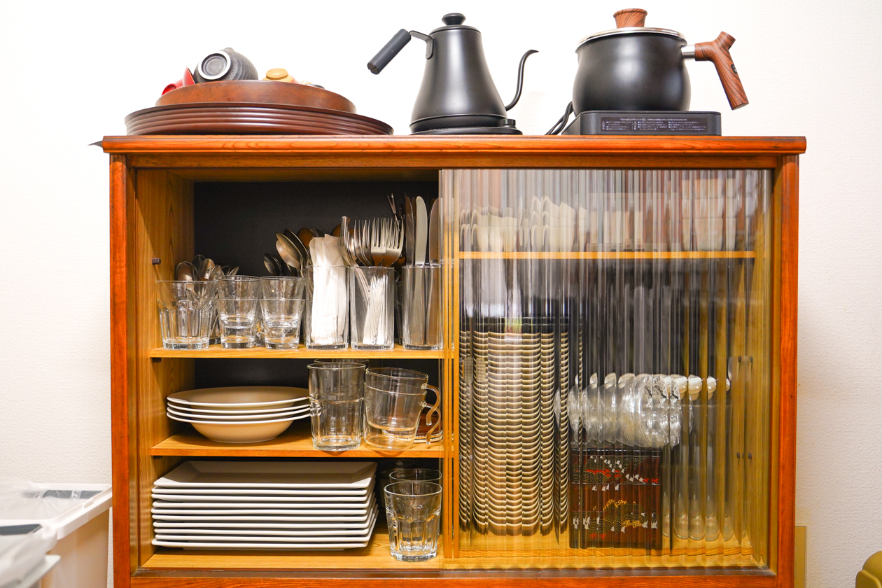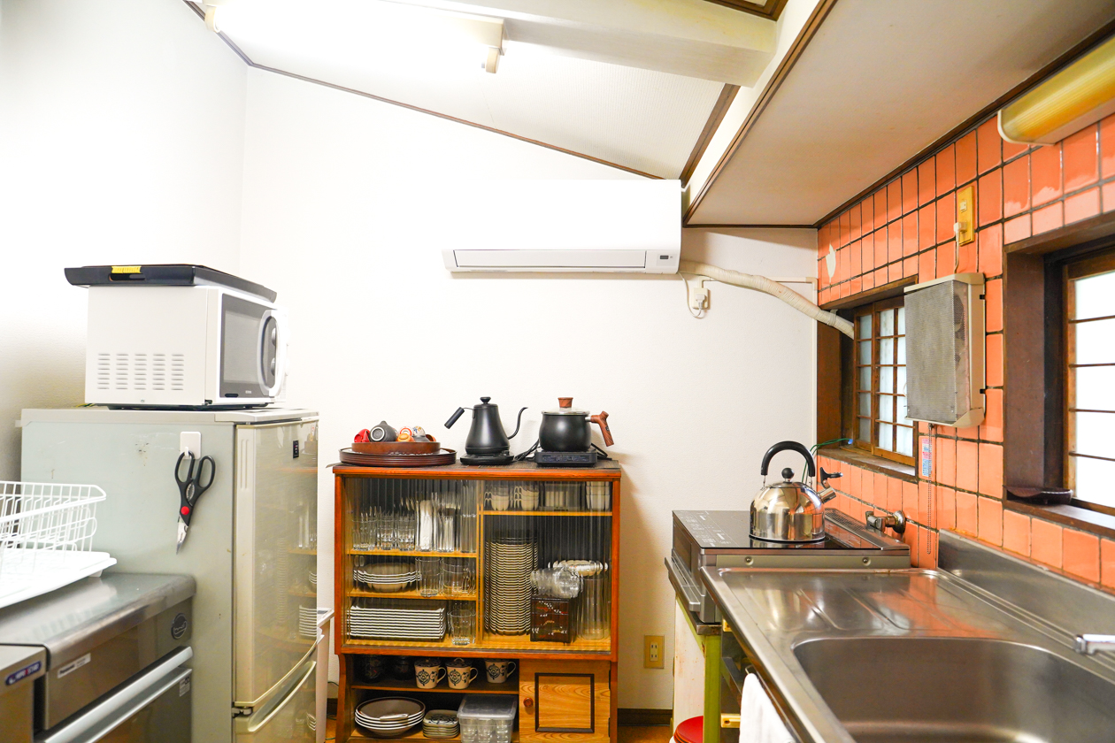 もともと住居として使われていたので、もちろんキッチンや浴室なども完備。「食器や鍋、戸棚、椅子などの家具も、近くのお店で使われなくなったものや、地域の方からいただいたものがほとんどなんです。いろんな方に応援していただいて、とてもありがたいです」と山本さん。