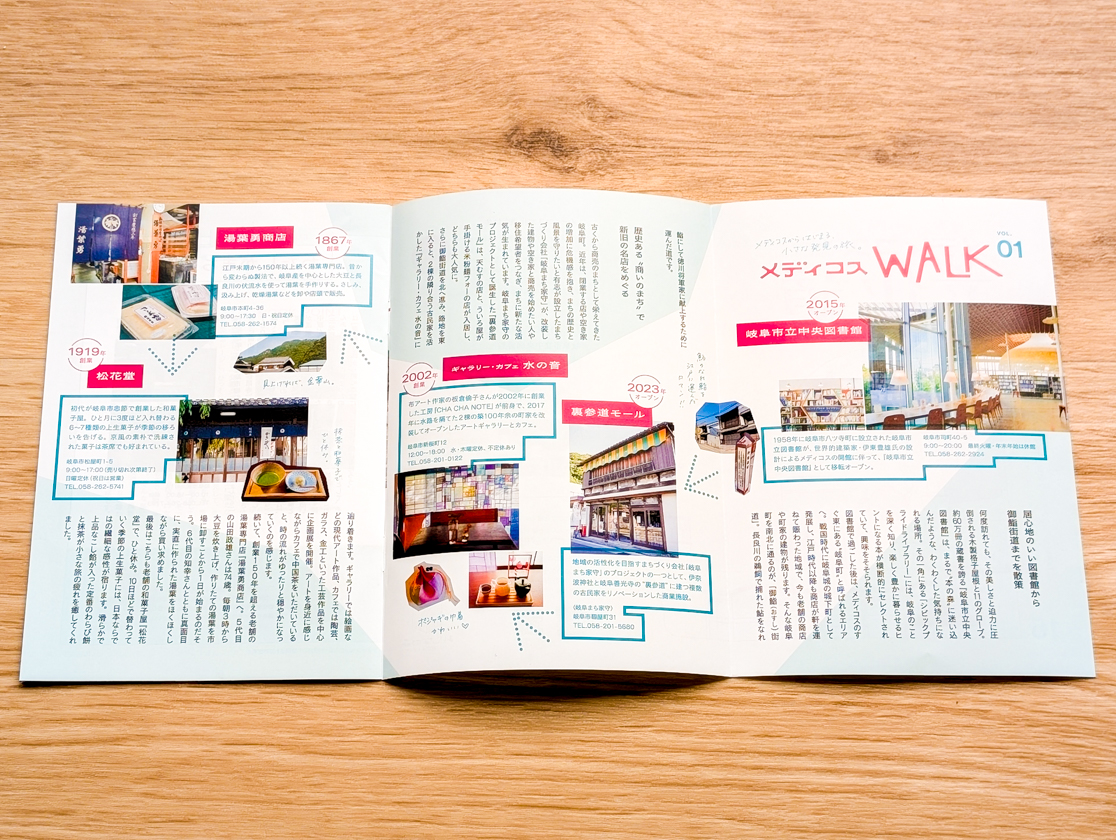 読み応えたっぷりのメディコス文化道vol.16は、メディコス館内で配布中!岐阜トーキョー、やながせ倉庫団地などのほか、まちなかのお店でも随時配布されますので、見かけた際は、ぜひ手にとってご覧くださいね!