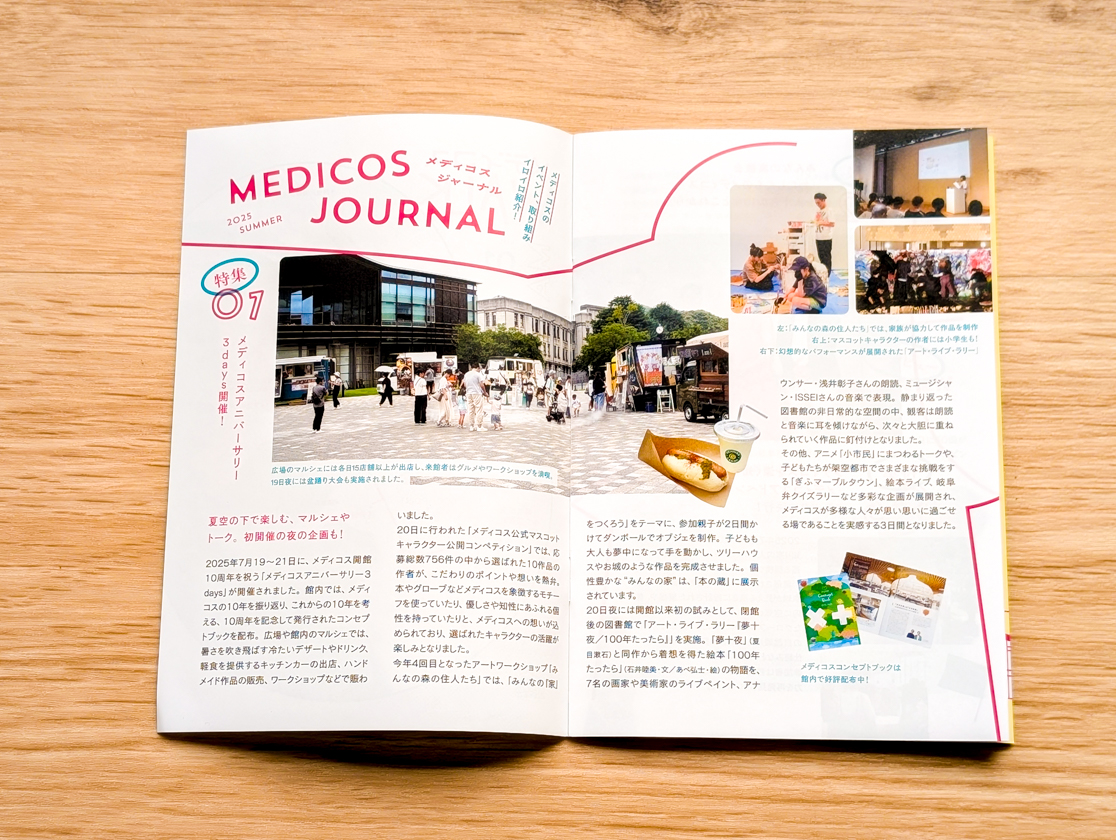 2021年に創刊したメディコスの広報紙「メディコス文化道」には、“メディコスを起点に、人をつなぐ文化の道がまちに広がってほしい”という思いが込められています。