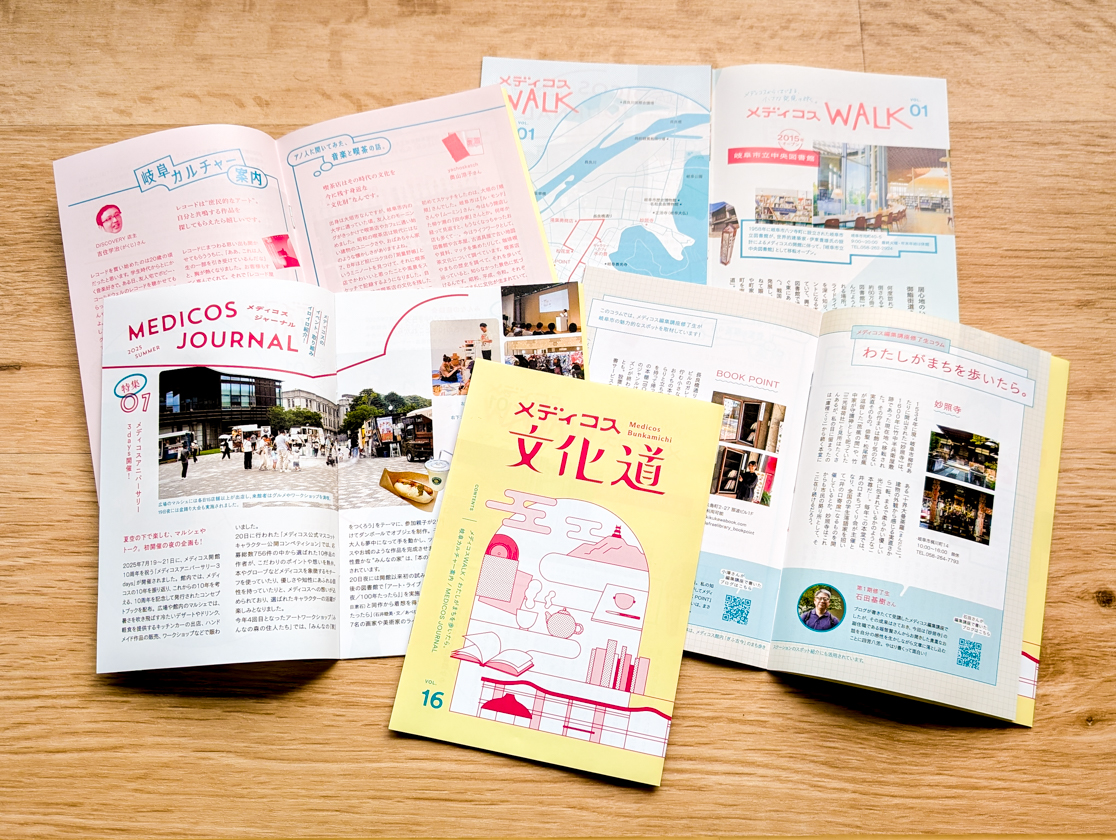 読み応えたっぷりのメディコス文化道vol.16は、メディコス館内で配布中!岐阜トーキョー、やながせ倉庫団地などのほか、まちなかのお店でも随時配布されますので、見かけた際は、ぜひ手にとってご覧くださいね!