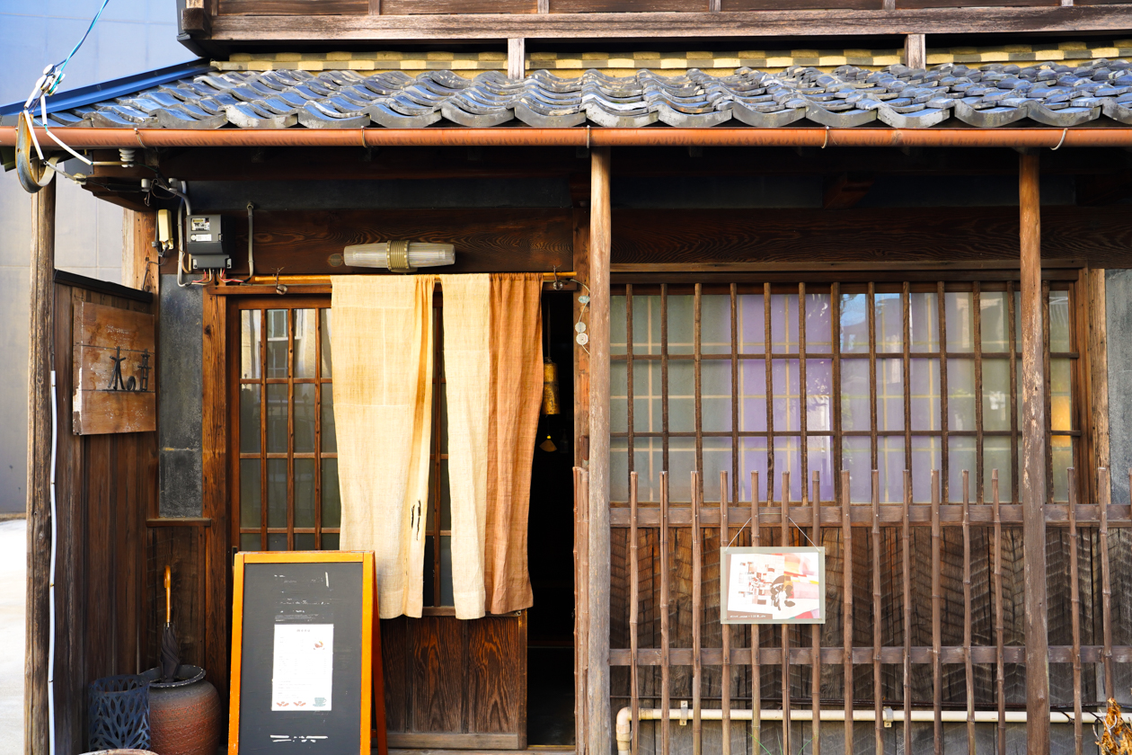 江戸時代に鵜飼でとれた鮎を熟鮓(なれずし)にして徳川将軍家に献上するために運んだという「御鮨街道(おすしかいどう)」から、少し東へと入った路地沿いに建つ2つの古民家。大正初期に建てられた建物がギャラリーやカフェとして活用されています。まずは、東側の建物へ。