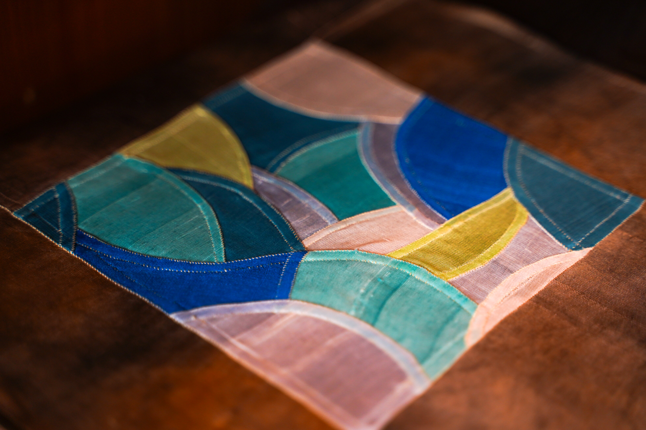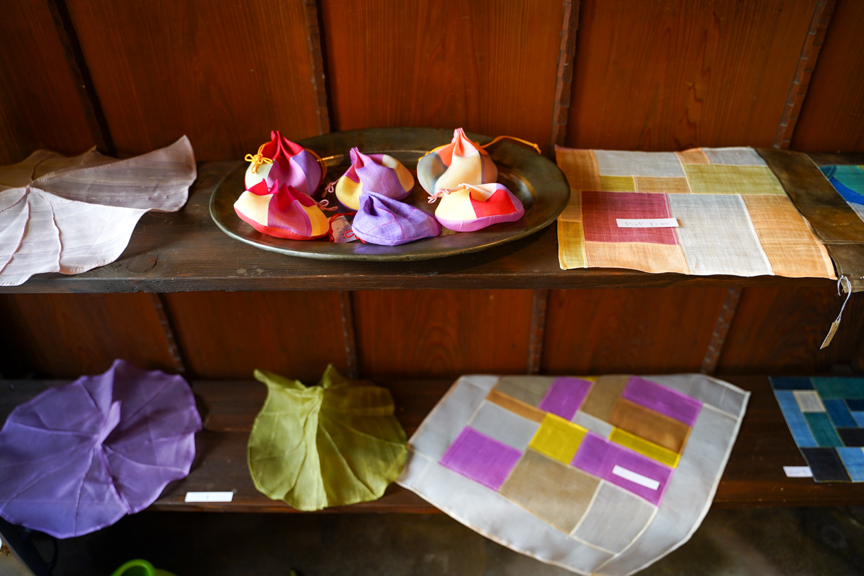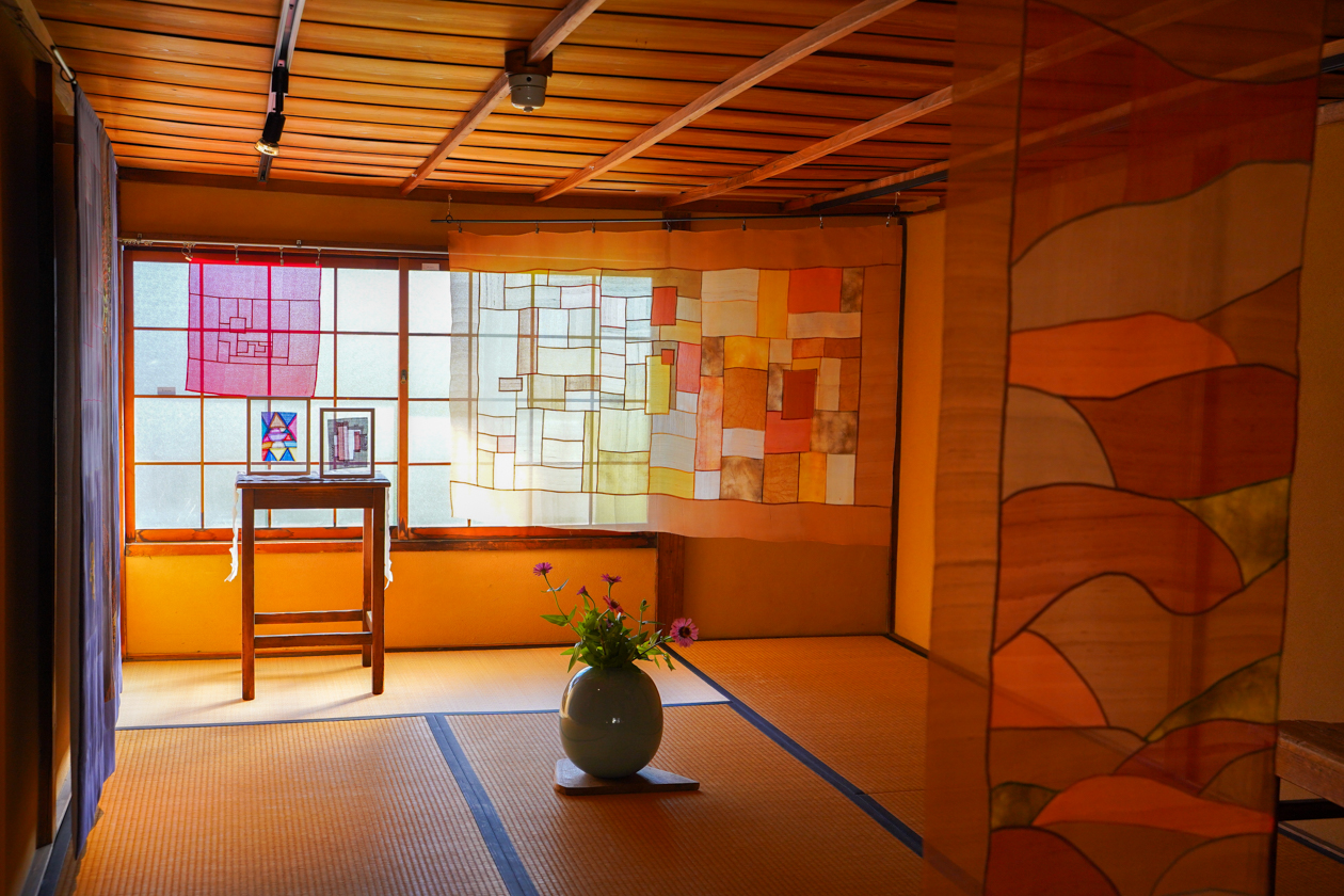 実はこの「ギャラリー・カフェ 水の音」を営むのは、布アート作家の板倉倫子さん。毎月、ポジャギ教室を開いている板倉さんと生徒さんの作品がカフェやギャラリーの空間を美しく彩っていました。