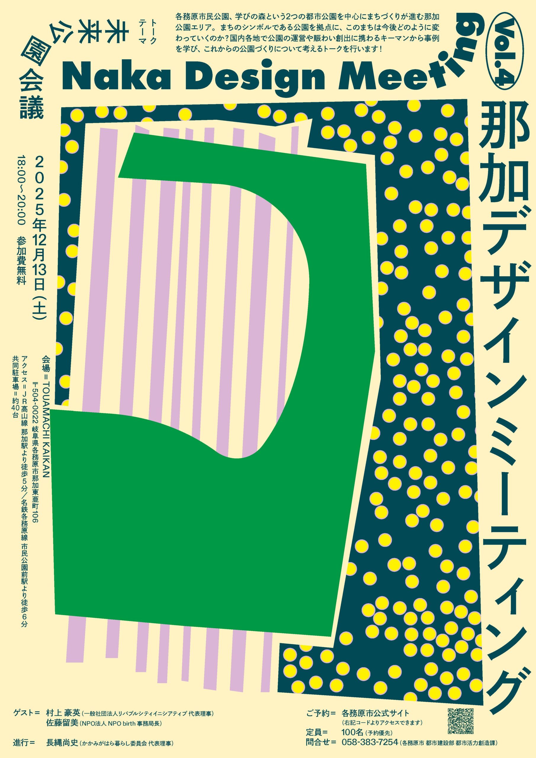 2025年12月13日(土)に、各務原市にあるTOUAMACHI KAIKANで「那加デザインミーティングVol.4 <未来公園会議>」が開催されます!