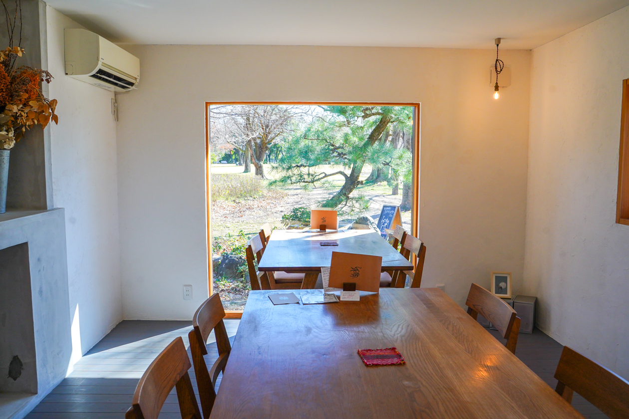 この日は大きな窓から公園が眺められるテーブル席にご案内いただきました。この洋室のほかに、縁側がある畳の和室もあります。