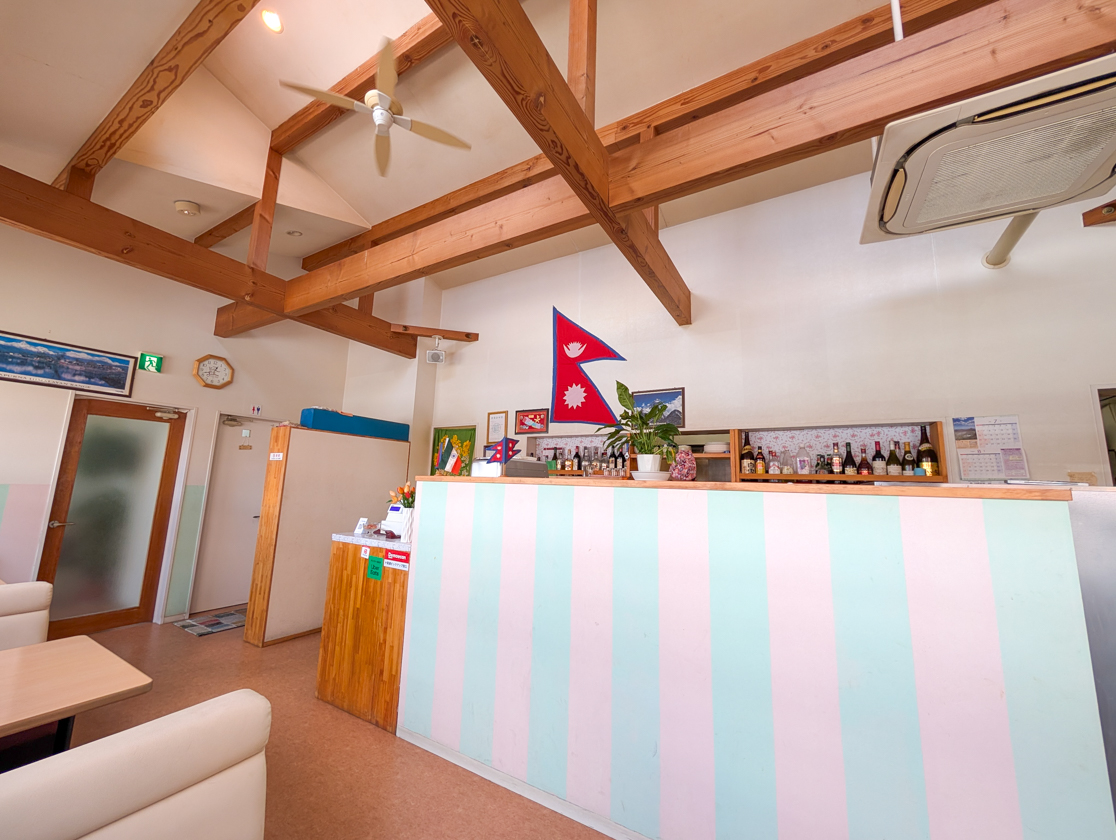 店内は広めのソファ席もあって、ゆったり落ち着けます。ネパールの国旗が飾ってあり、店員さんもネパール出身のようですが、もちろん、日本語も通じます。