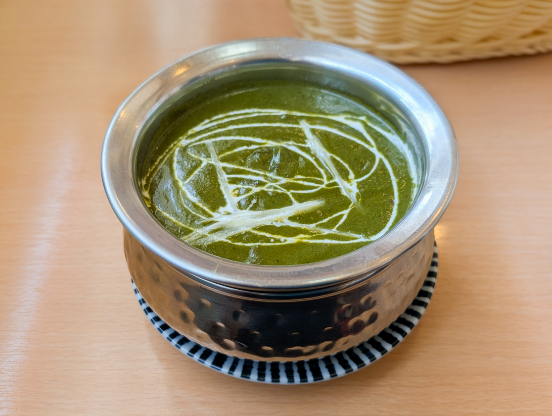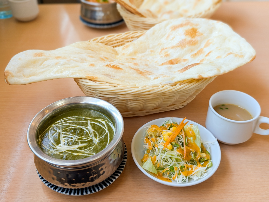 こちらも「Aセット」で、カレーはほうれん草チキンカレーをセレクト。ほうれん草の甘みとわずかな苦みも美味しくて、チキンもごろごろ入っていて贅沢です!どのセットもドリンクがついていて、ラッシーが選べるのも◎。とっても満足のランチでした。