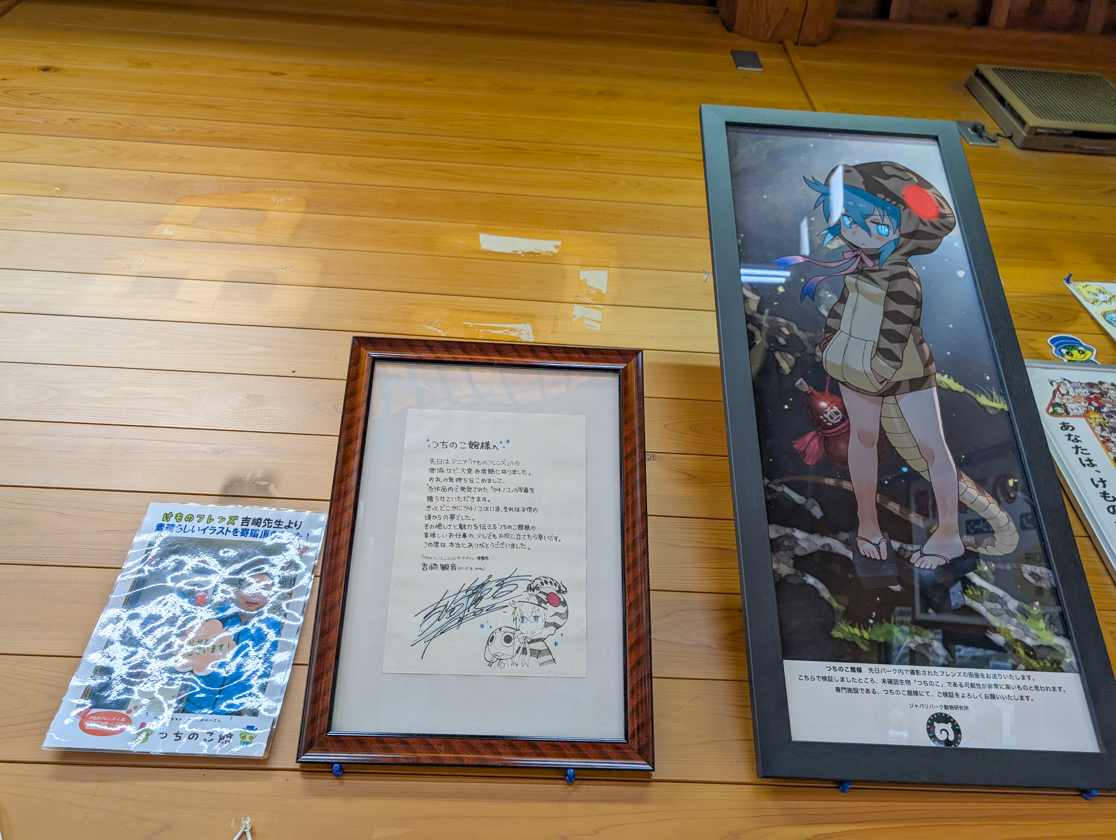 メディアミックス作品の「けものフレンズ」にも「ツチノコ」をモチーフにしたアニマルガールが登場していて、作者の吉崎先生から贈られたイラストも展示されています。