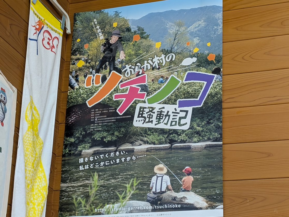 さらに、東白川村で撮影されたドキュメンタリー映画『おらが村のツチノコ騒動記』のポスターも貼られていました。