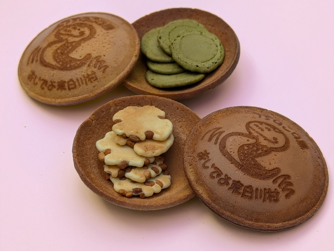 袋の中には2種類のおせんべいが入っていて、さらにその中にそれぞれ、玄米と抹茶のミニせんべいが!“八百津せんべい”で知られる日の丸製菓さんがつくっているので、味もお墨付き!さくさくっと軽く、つい手が伸びる美味しさでした!