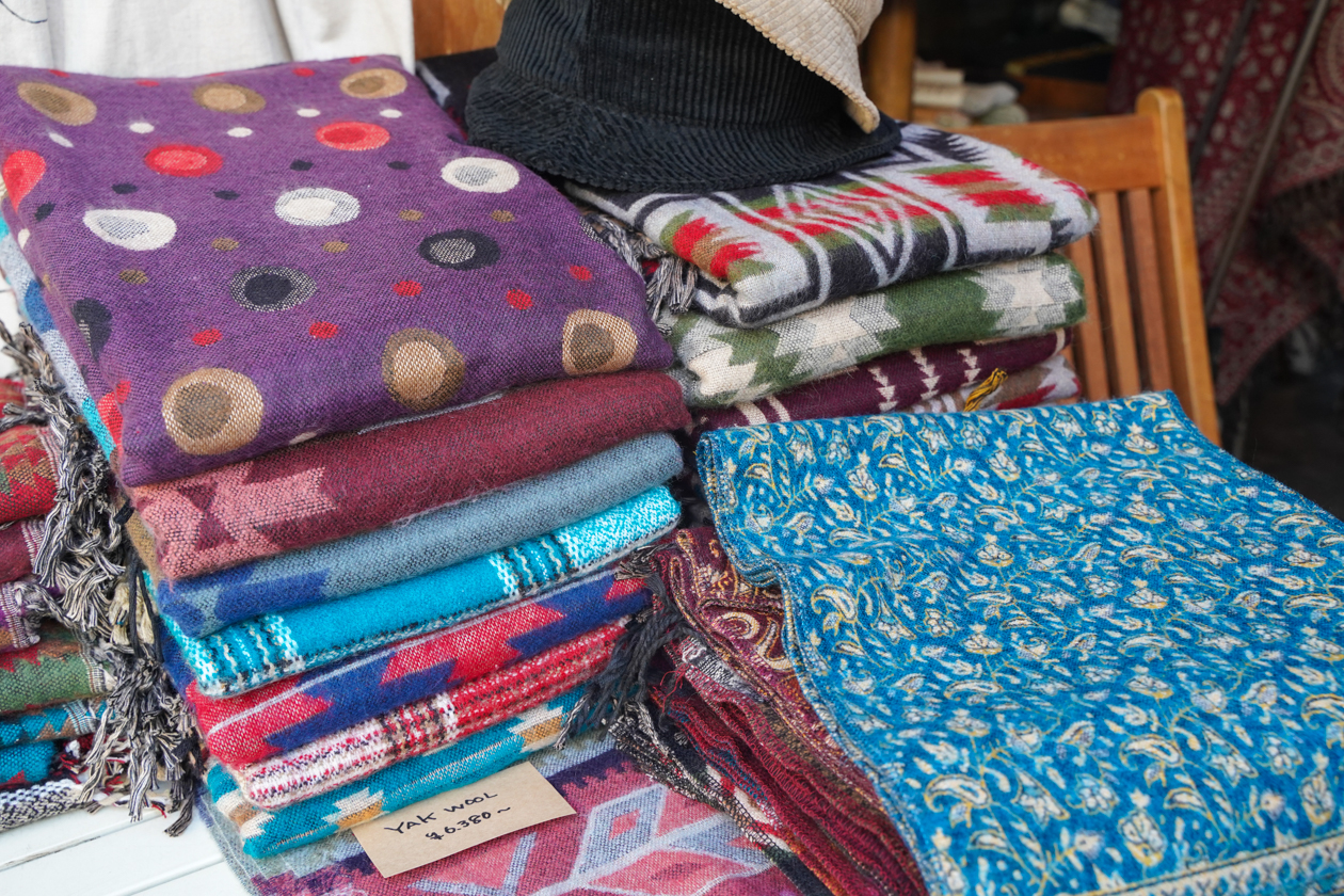 今のシーズンはネパールで買い付けたヤクのウールストールが人気だそう!カラフルでデザインもいろいろ揃っているので、きっとお気に入りが見つかるはず。