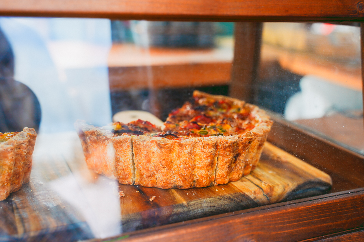 「atelier feliz」さんには、美味しそうなキッシュがずらりと並んでいました!古代玄米粉やオーガニックキヌアなどを使用されているとのこと。