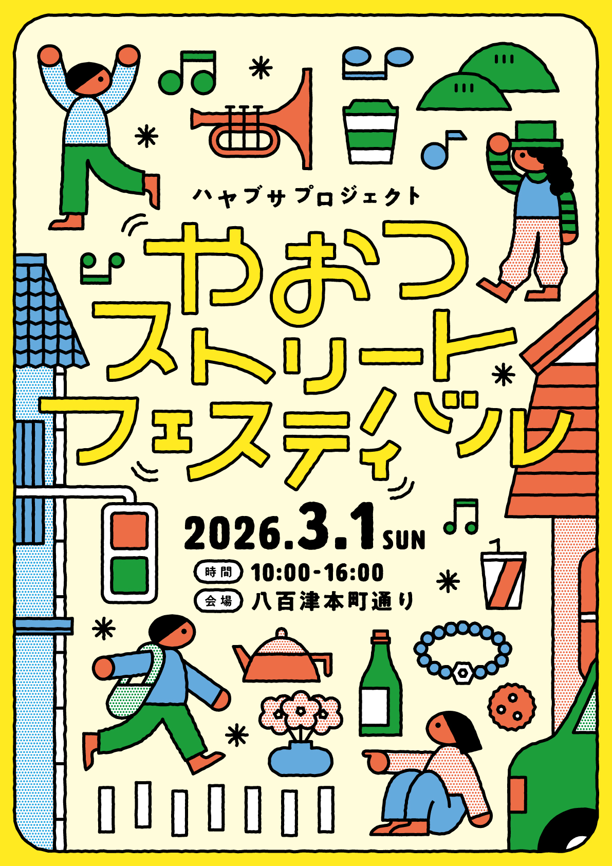 (「やおつストリートフェスティバル」のビジュアルデザインは、さかだちブックスを運営する株式会社リトルクリエイティブセンターが担当させていただきました。)