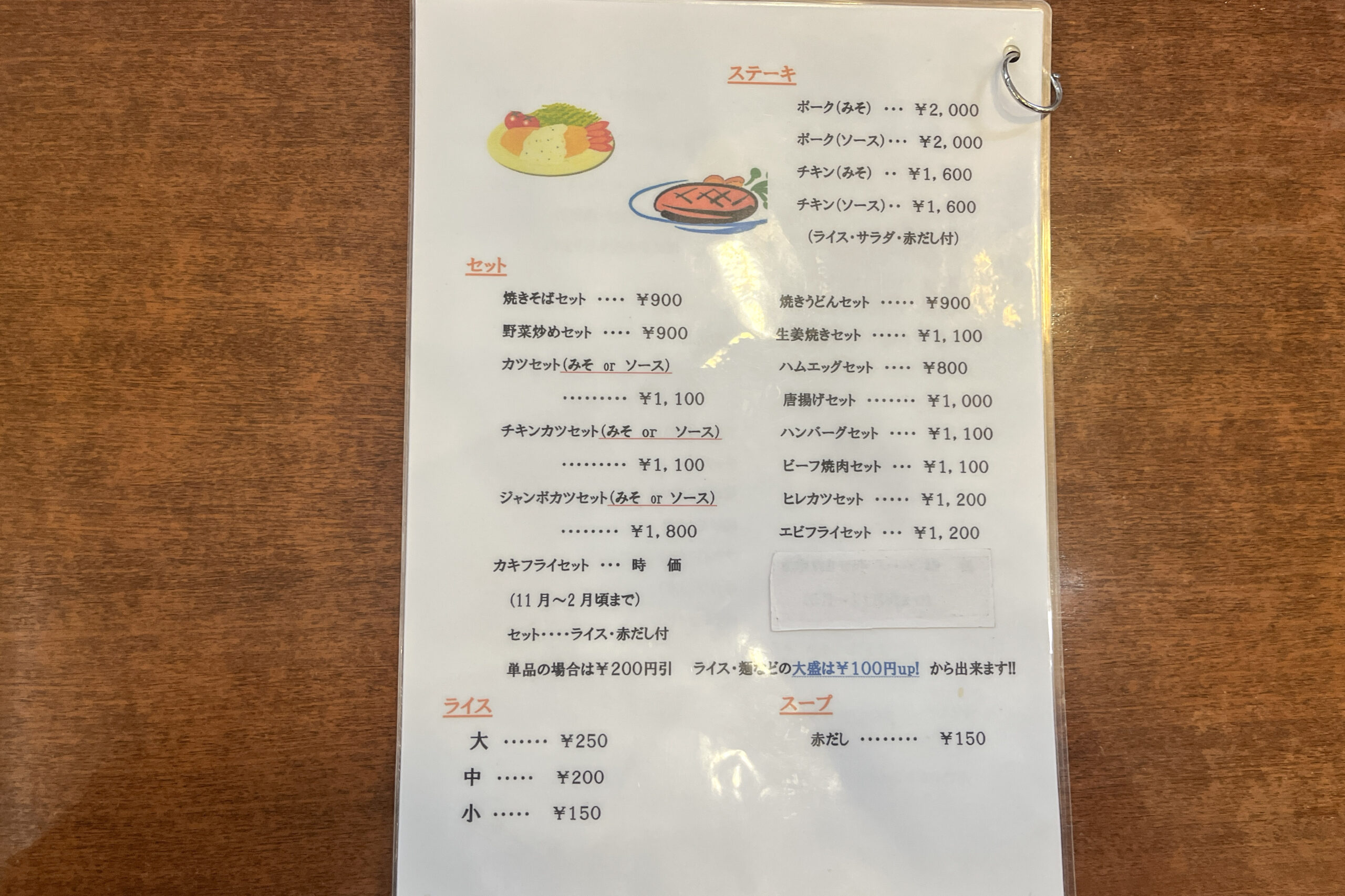 メニューはいろいろなお惣菜がワンプレートにのったA〜Eランチに、焼きそばやスパゲッティ、焼うどんとおかずがセットになったランチ、期間限定のかき釜めし、カレーや丼もの、ステーキ、麺類など種類豊富!食べたいものが必ず見つかりそうなラインナップです!