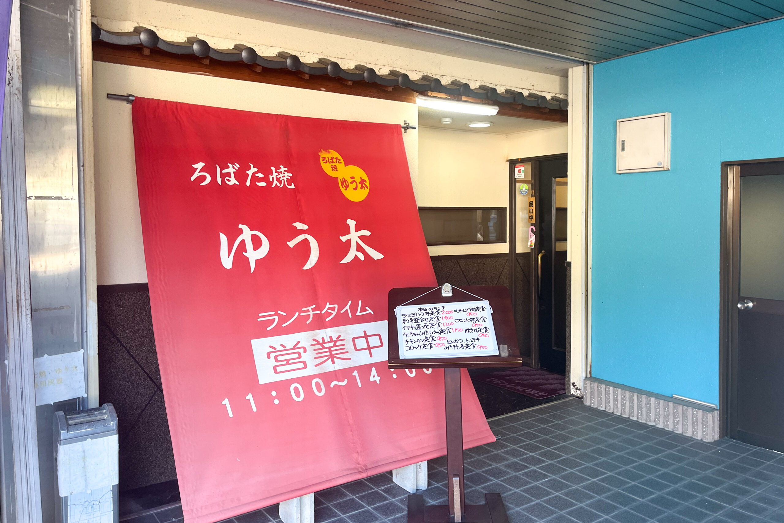 店舗があるのは2026年1月に新庁舎が完成した白川町役場の前。コンビニやコスメショップなどが並ぶ建物の一角にあり、共用の駐車場が利用できます。店名が書かれた大きな赤色の幕が目印です。