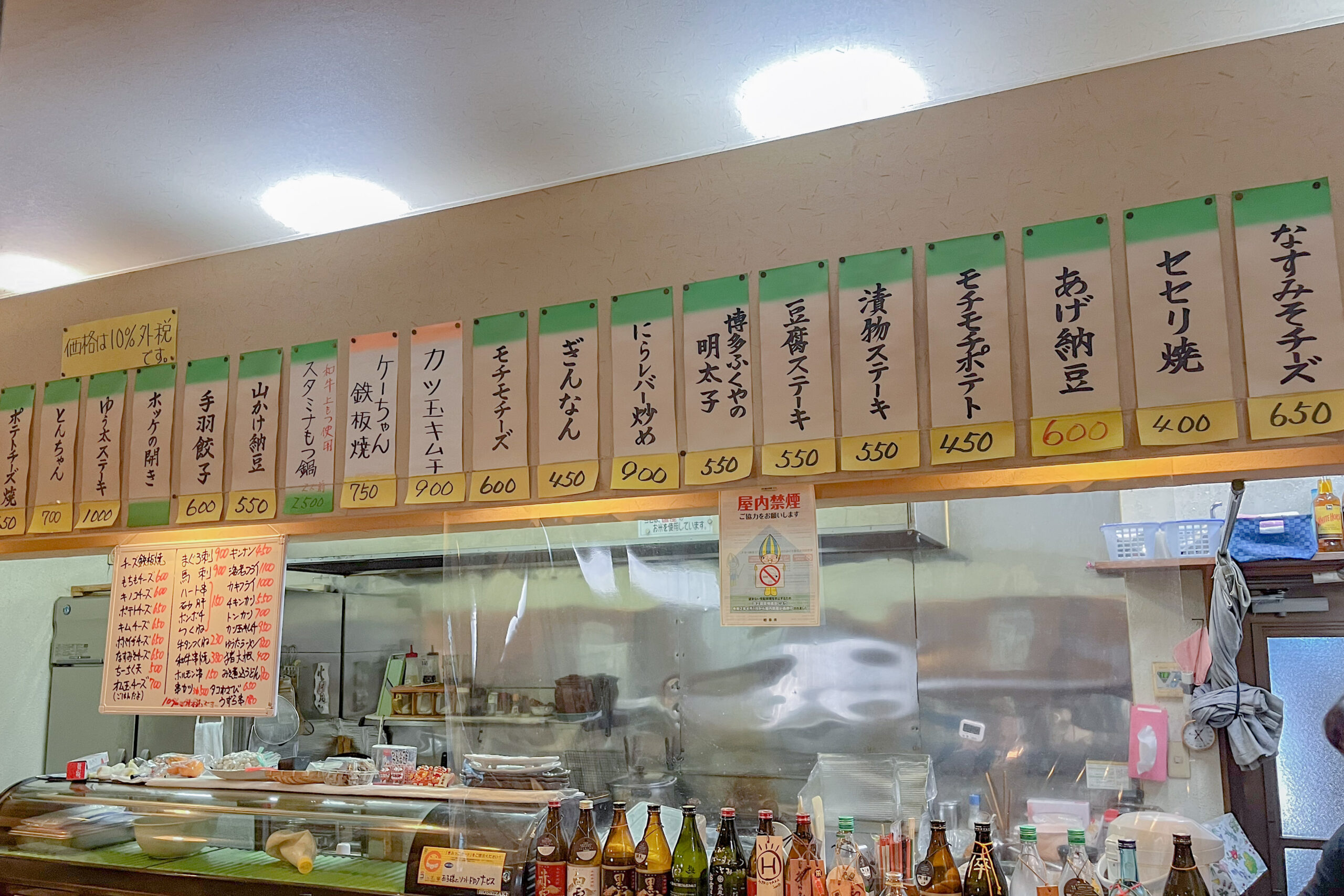 店内にはカウンター席と座敷席があり、お昼休憩中らしきサラリーマンが次々と訪れていました。カウンターの前にはボトルキープされたお酒がずらりと並んでいて、夜は常連のお客さんで賑わっているようです!